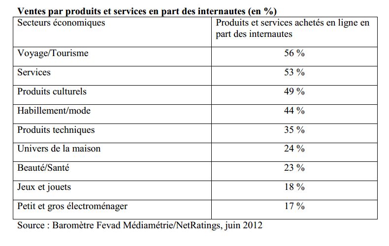 Selon la note, l’un des secteurs les plus exposés par le développement du e-commerce s’avère être le commerce de produits de grande consommation relatifs à l’équipement de la personne, pour lequel plus de 59% des plaintes de consommateurs concernent en 2011 la vente par internet. Seul le secteur de la communication et téléphonie ne connaît pas de hausse.